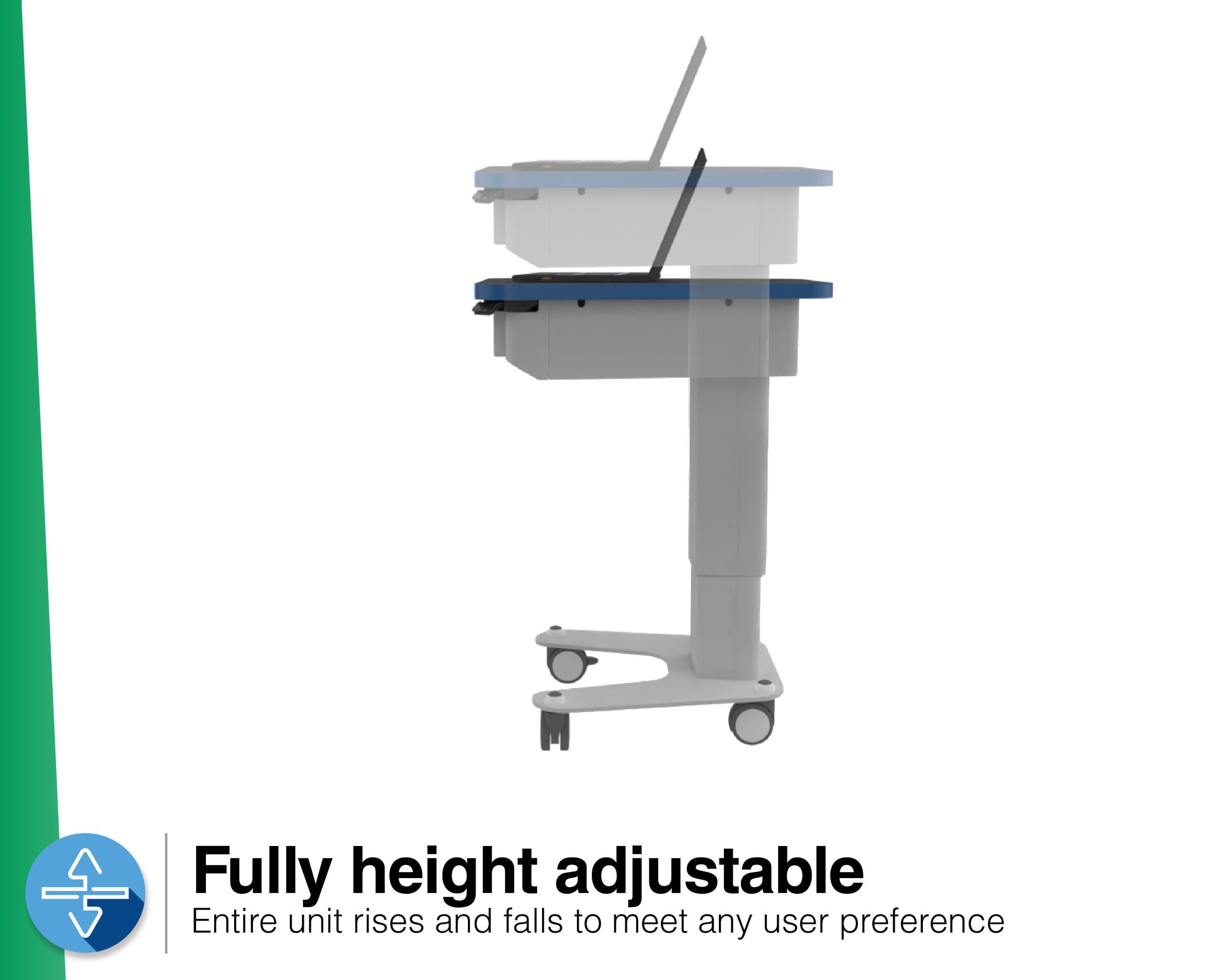 - Cable management beneath the worktop and within the height adjustable column