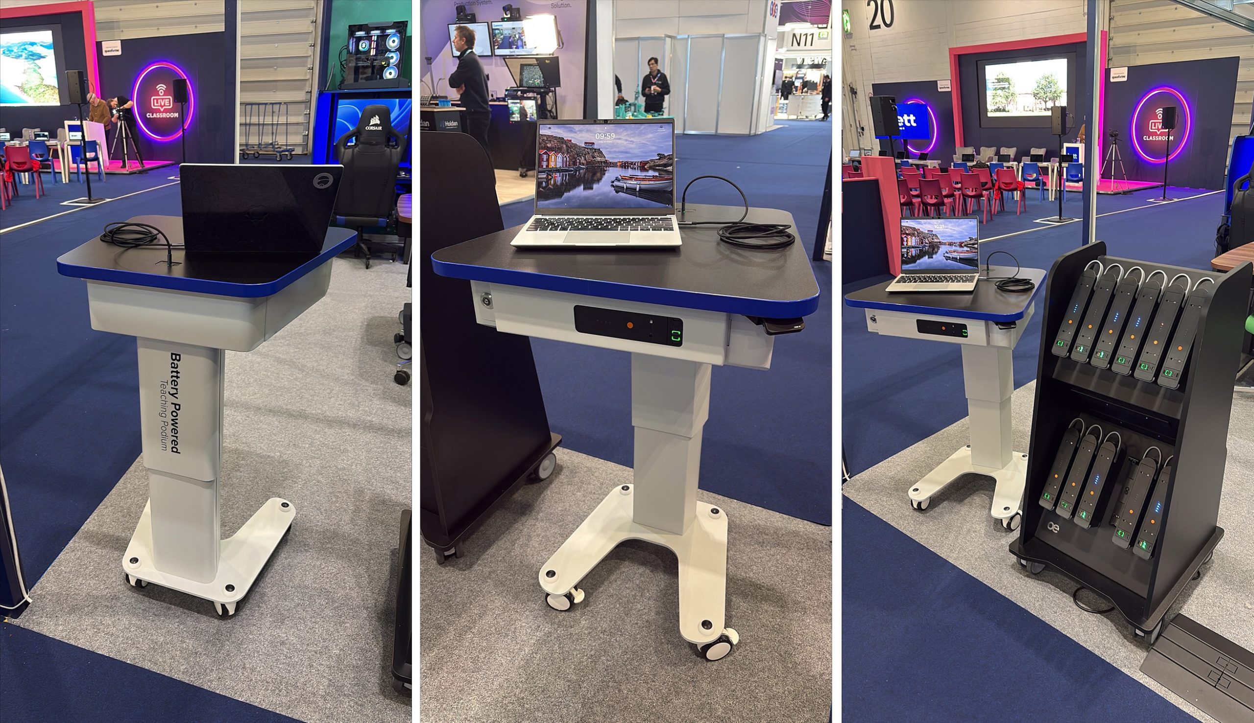 Orion is a battery powered, height adjustable podium, ideal for spaces where access to power outlets is limited or non-existent. These flexible podiums help create technology enriched environments where ever you like!