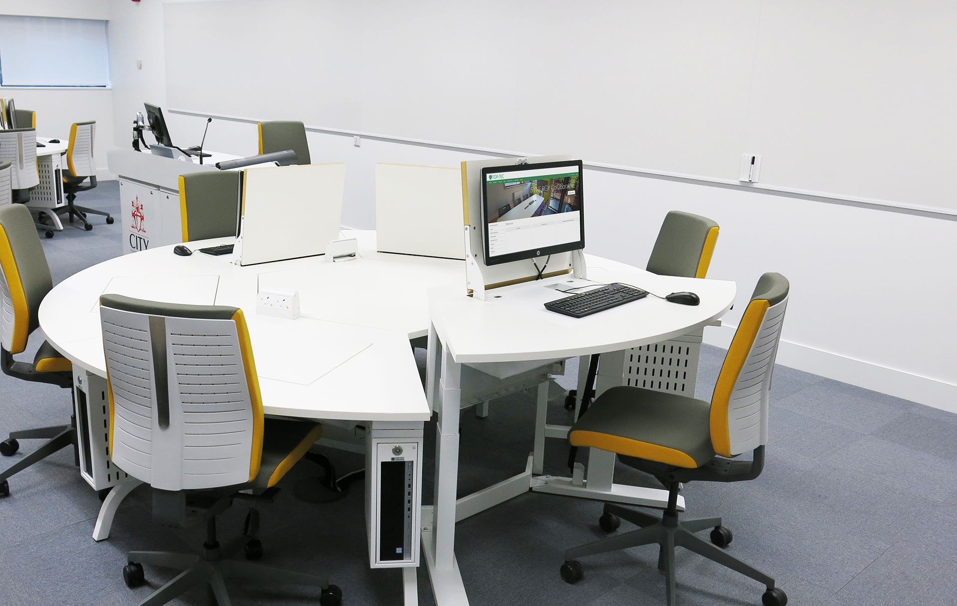 Flip-Top & Pop-Up DesksOur Forum Desk range encourages communication in two formats, transforming from IT station to writing desk at the pull of a lever. Customised to the required number of users, our Forum Desk is designed for collaborative working.