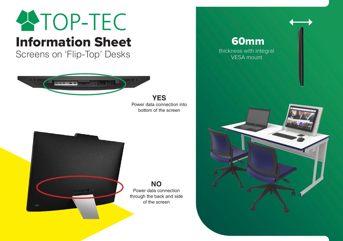 Flip-Top & Pop-Up DesksTransform your workspace in seconds with these popular multi-functional desks. Manual flip-top desks conceal screen, keyboard and mouse, all available to the user at the pull of a lever. Supporting ICT and non-ICT activities within the same space, these user-friendly desks are well established by their build quality.