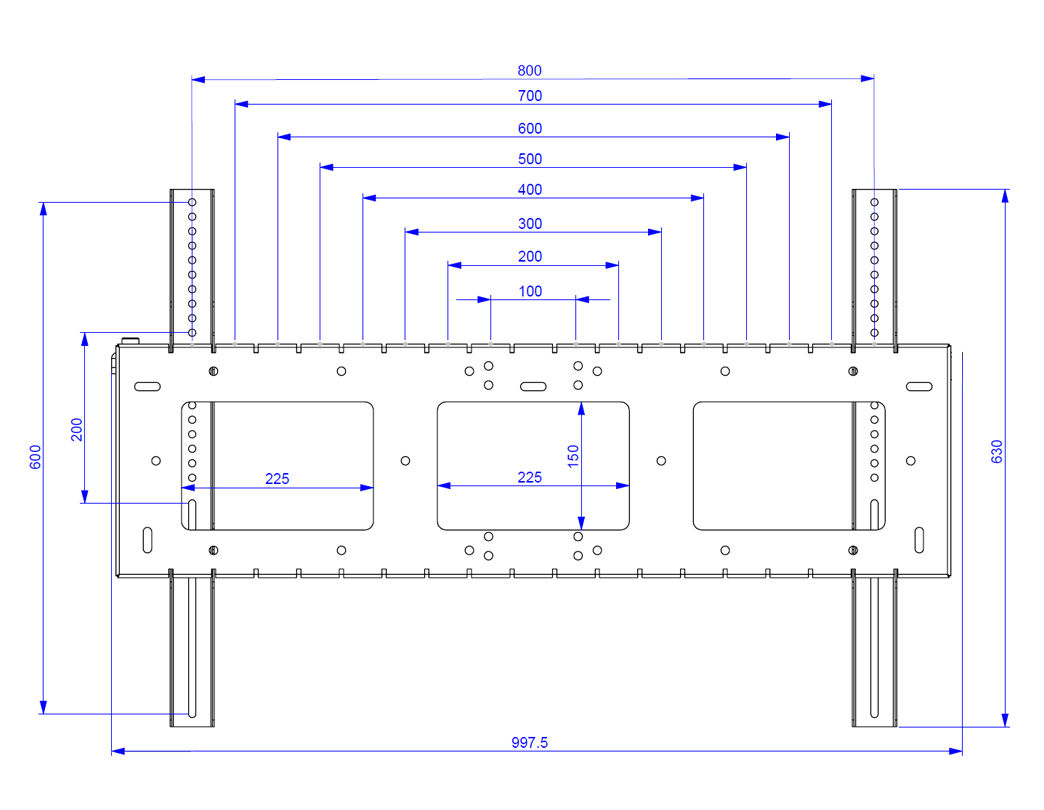 Wall mounting centres (MAX): 905mm(W) x 180mm(H)